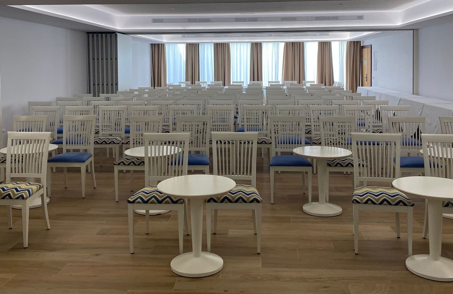 El hotel cuenta con una moderna y completa sala de eventos en un espacio diáfano y panelable con capacidad para unas 100 personas.